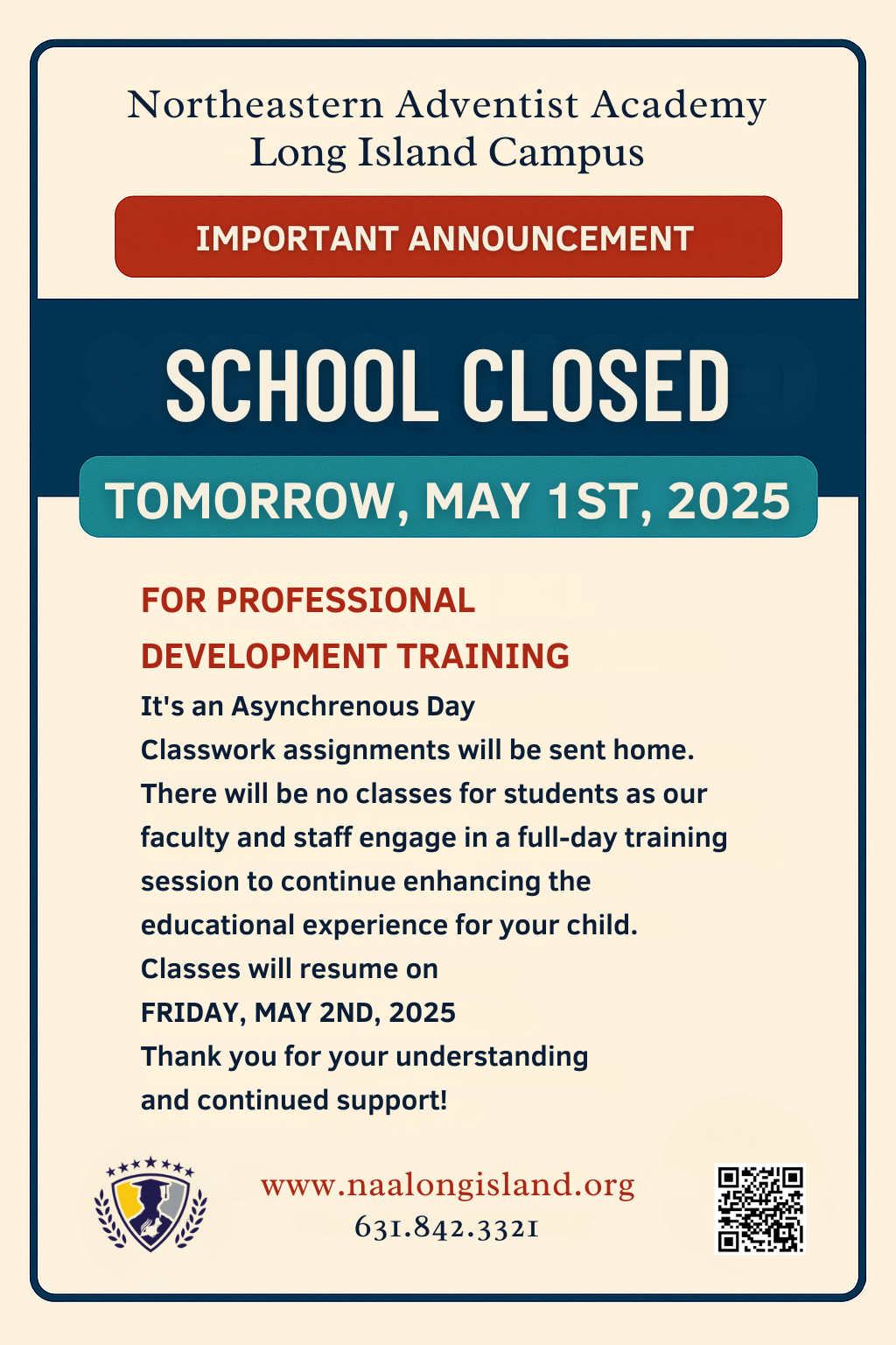 There will be no classes for students as our faculty and staff engage in a full-day training session to continue enhancing the educational experience for your child.
